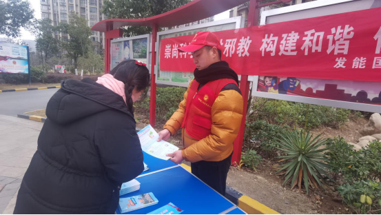 報告結(jié)束后,志愿者們還在社區(qū)內(nèi)進行了反邪教宣傳,向過往居民散發(fā)反邪教宣傳單,從什么是邪教、邪教的特征、本質(zhì)、如何防范等方面對群眾進行宣傳教育,使社區(qū)群眾進一步認識到了邪教組織的危害性,增強了的反邪教意識。