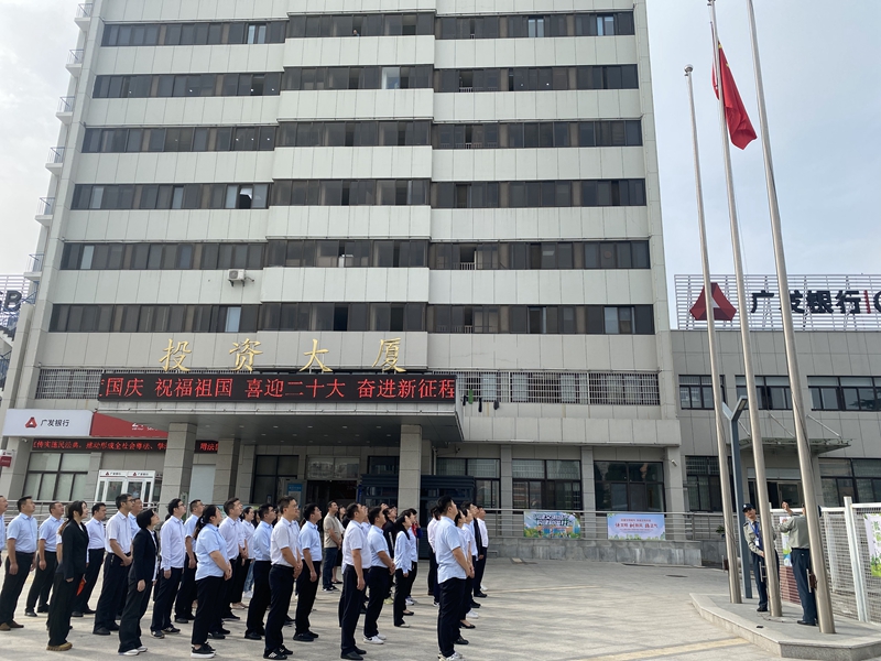 同升國旗、同唱國歌。9月30日上午,市礦投集團(tuán)聯(lián)合市文旅集團(tuán)、市揚(yáng)子工投集團(tuán)、市擔(dān)保集團(tuán)在投資大廈舉行升旗儀式,全體人員同唱國歌,抒發(fā)愛國情懷,表達(dá)對祖國的美好祝福。