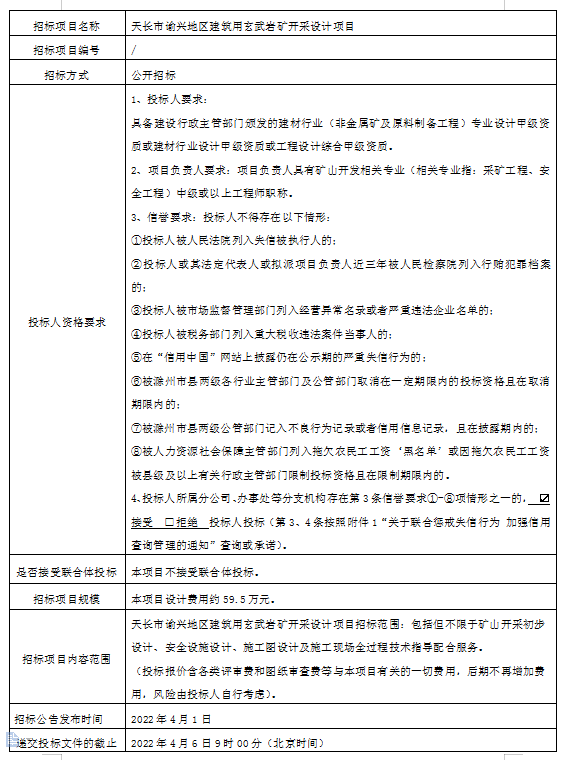 天長市諭興地區(qū)建筑用玄武巖礦開采設(shè)計項目招標(biāo)公告