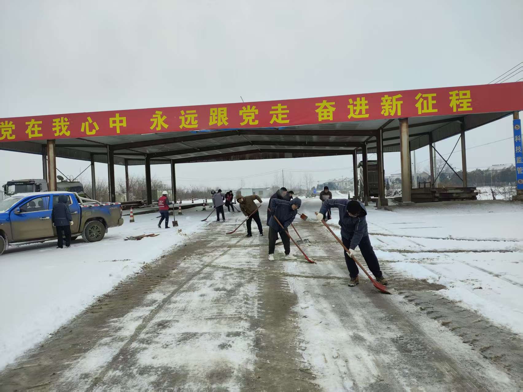風(fēng)雪之中,集團(tuán)各級黨組織迅速響應(yīng)。領(lǐng)導(dǎo)干部現(xiàn)場指揮,黨員骨干主動帶頭,職工群眾積極參與。在集團(tuán)辦公區(qū)、各礦區(qū)主干道及設(shè)備集中區(qū)域,大家齊心協(xié)力,冒著嚴(yán)寒清掃積雪。重點(diǎn)對礦區(qū)關(guān)鍵通道、作業(yè)平臺和巡檢路線進(jìn)行了清理,及時為安全生產(chǎn)和職工出行開辟安全通道。