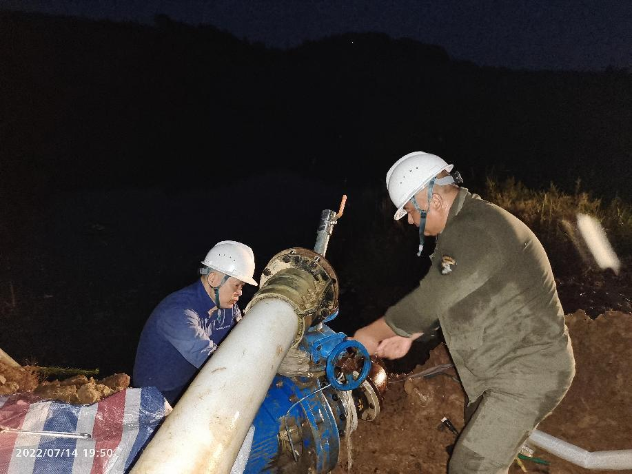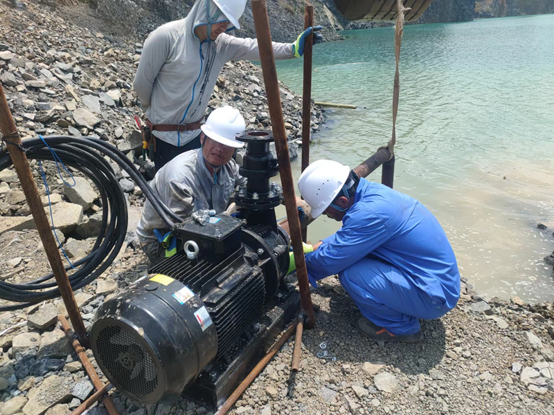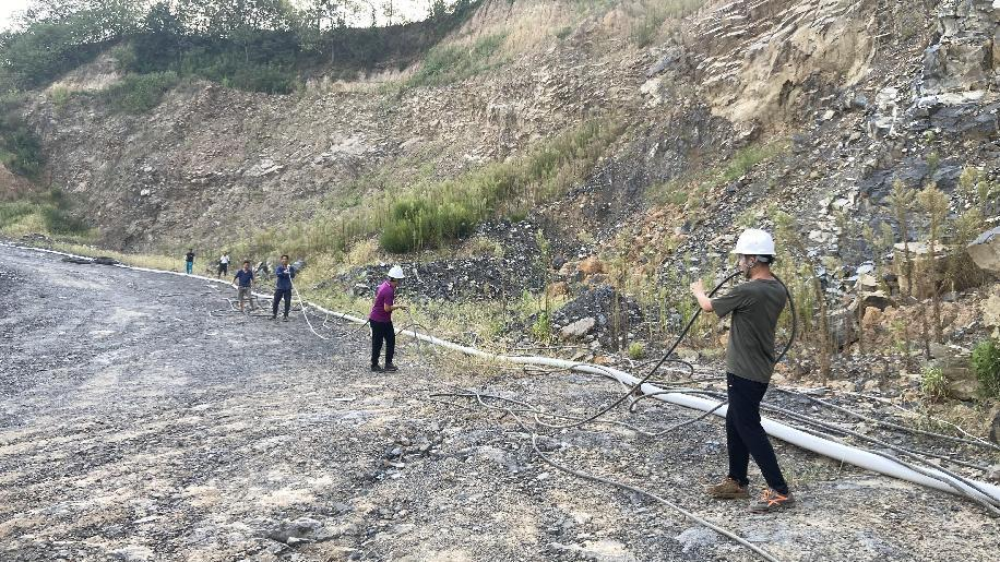 抗旱方案有了,可是要想把水從70米深的礦坑內(nèi)抽到地面,不但需要揚(yáng)程特別高的水泵,還需要高規(guī)格長距離的水管和電纜,還有很多配套零部件要采購。旱情就是命令,抗旱就是責(zé)任,興天礦業(yè)副總經(jīng)理趙崗牽頭落實抗旱物資采購,親自指揮設(shè)備調(diào)運(yùn)安裝,帶領(lǐng)公司抗旱突擊隊和社區(qū)干部深入礦坑,一起研究水泵需要多大功率安裝在什么地方、水管需要多粗從哪里下放、電纜需要多長從哪里接電等問題。方案制定好了,老百姓的水稻不能等,挖掘機(jī)第一時間進(jìn)場整理場地,興天礦業(yè)和社區(qū)準(zhǔn)備的水泵、水管電纜等也迅速到位,抗旱突擊隊與社區(qū)干部群眾一起與時間賽跑,從早到晚緊張施工,一心想著的就是早點(diǎn)把水抽上去,盡量把旱情影響降到最低。